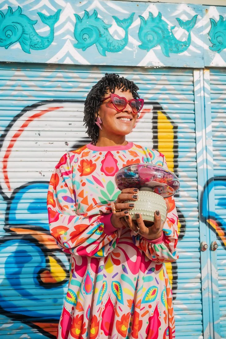 Ayanna’s artistic practice focuses on creating art from what’s left behind. Through transforming discarded, broken and forgotten materials into uplifting, colourful works of art her mission is to challenge our beliefs about waste and inspire change for a brighter future. Utilising reclaimed plastic waste, discarded medical devices and salvaged scrap resin, eclectic collections of colourful junk and forgotten fragments of our lives are repurposed and reimagined to create one of a kind resin art, sculpture & homewares.